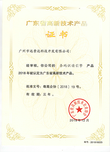 遠(yuǎn)景達高新技術(shù)產(chǎn)品證書(條碼識讀引擎)
