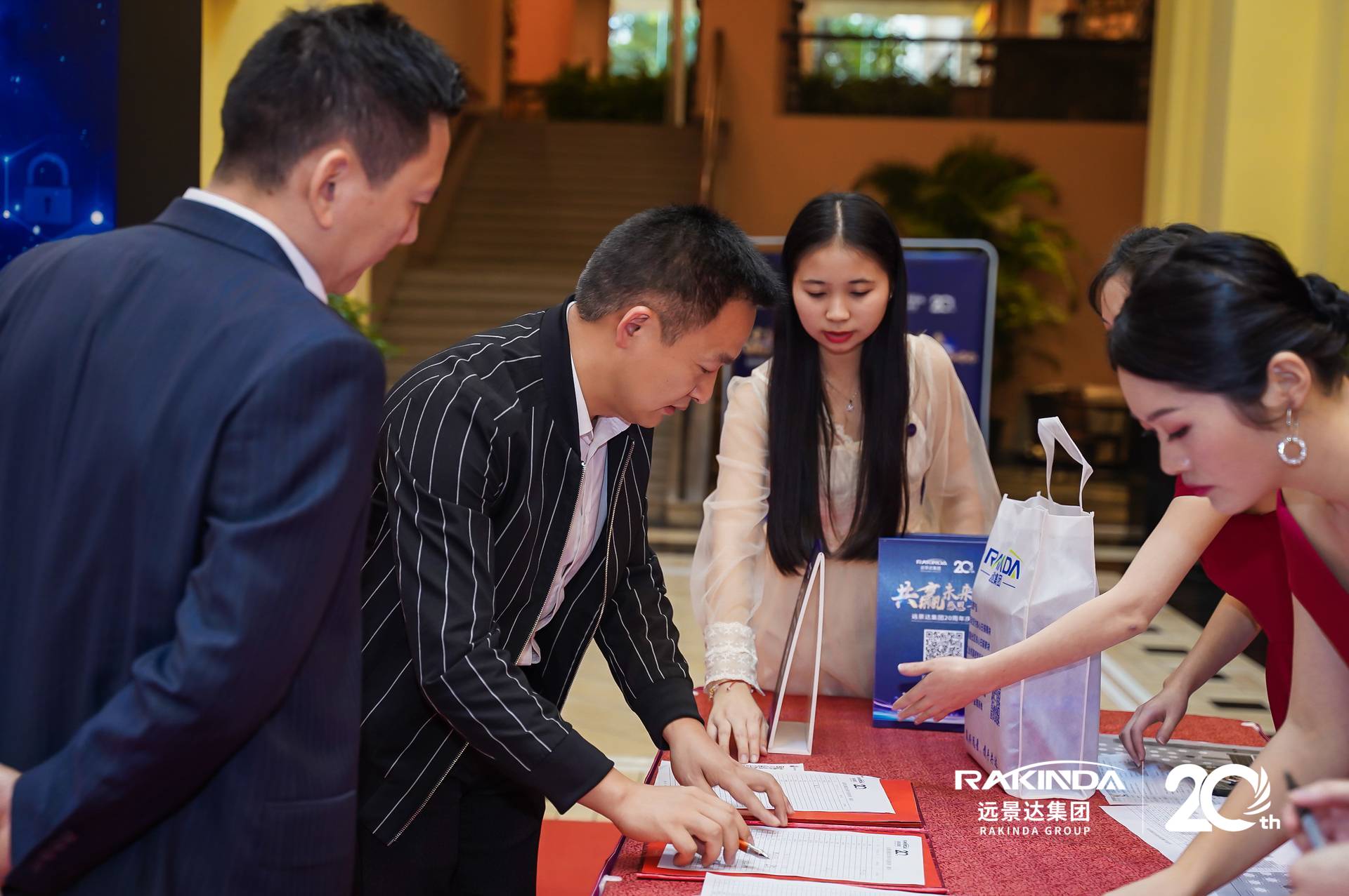 下午四點半,遠景達集團各位家人們以及此次晚會邀請的嘉賓陸續到場簽到,并與禮儀小姐合影留念。