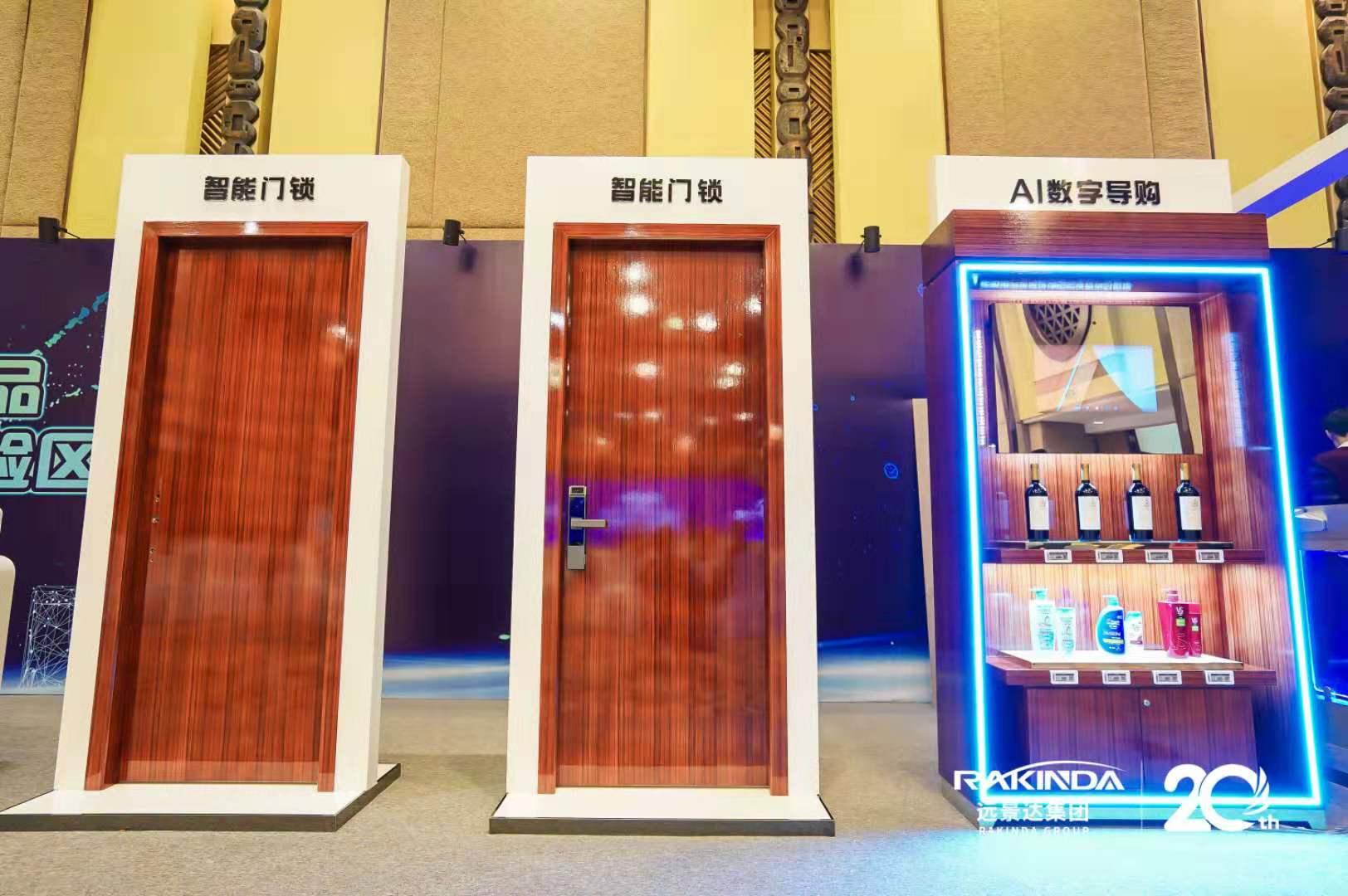 在宴會廳用餐區后面還設置了產品展示區供嘉賓參展體驗,人臉識別閘機、智能門鎖等眾多高科技產品,應有盡有。