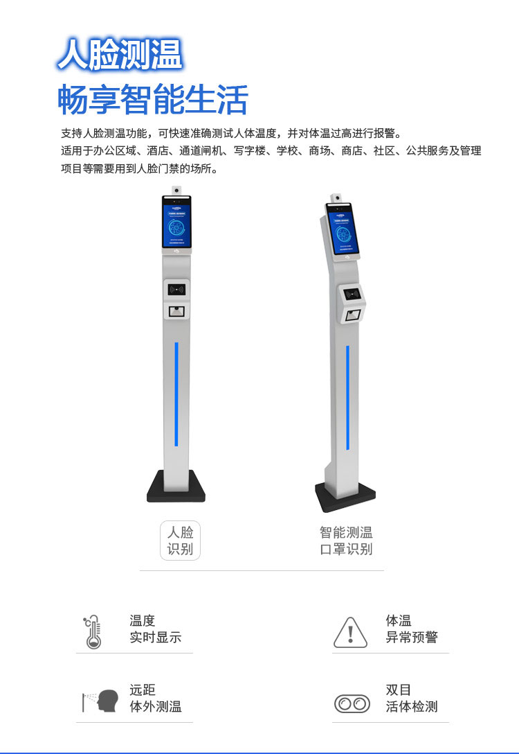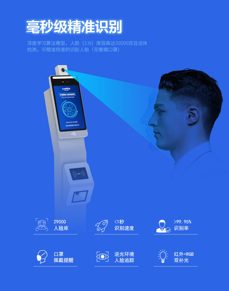 1、支持戴口罩人臉識別的同時完成體溫檢測;