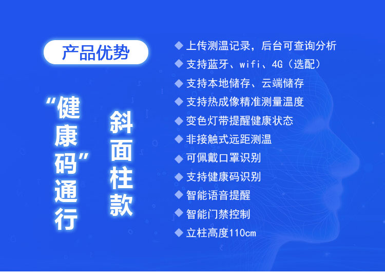 F6-FH人臉識別健康碼核驗一體機(健康碼通行斜面柱款)是深圳遠景達科技自主研發的、特別針對全國各地的“健康碼”應用進行深入定制與開發的一款人臉測溫型產品,可應用于政務服務大廳、醫護場所、街道社區、校園和企事業單位等,核心功能包括人臉識別、非接觸式的面部測溫、口罩識別、身份證核驗、識別健康碼狀態、高溫預警、門禁管控和打卡考勤等功能。