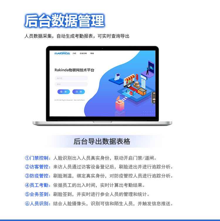 8、出入的刷臉記錄和當時體溫數值會進行保留,存儲在本機上也可導出數據,方便進行輸出和管理;