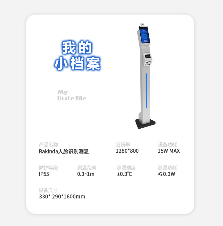 4、內置低功耗紅外測溫模塊,毫秒級完成檢測,檢測距離在0.3-1m,體溫檢測精度<0.3℃;
