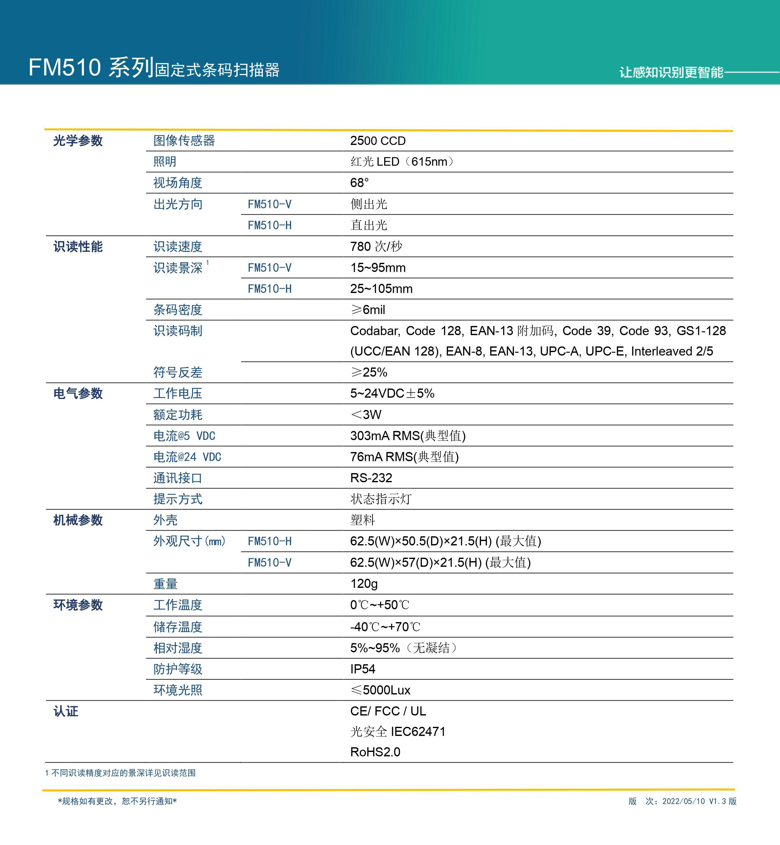 FM510 系列產(chǎn)品為醫(yī)療檢測領(lǐng)域?qū)S靡痪S線性掃碼器,主要集成在實(shí)驗(yàn)室、醫(yī)院、流水線的檢測儀器上,用于 近距離試管或試劑瓶上一維紙質(zhì)條碼的快速可靠識(shí)讀。 FM510 系列有 FM510-V 和 FM510-H ...