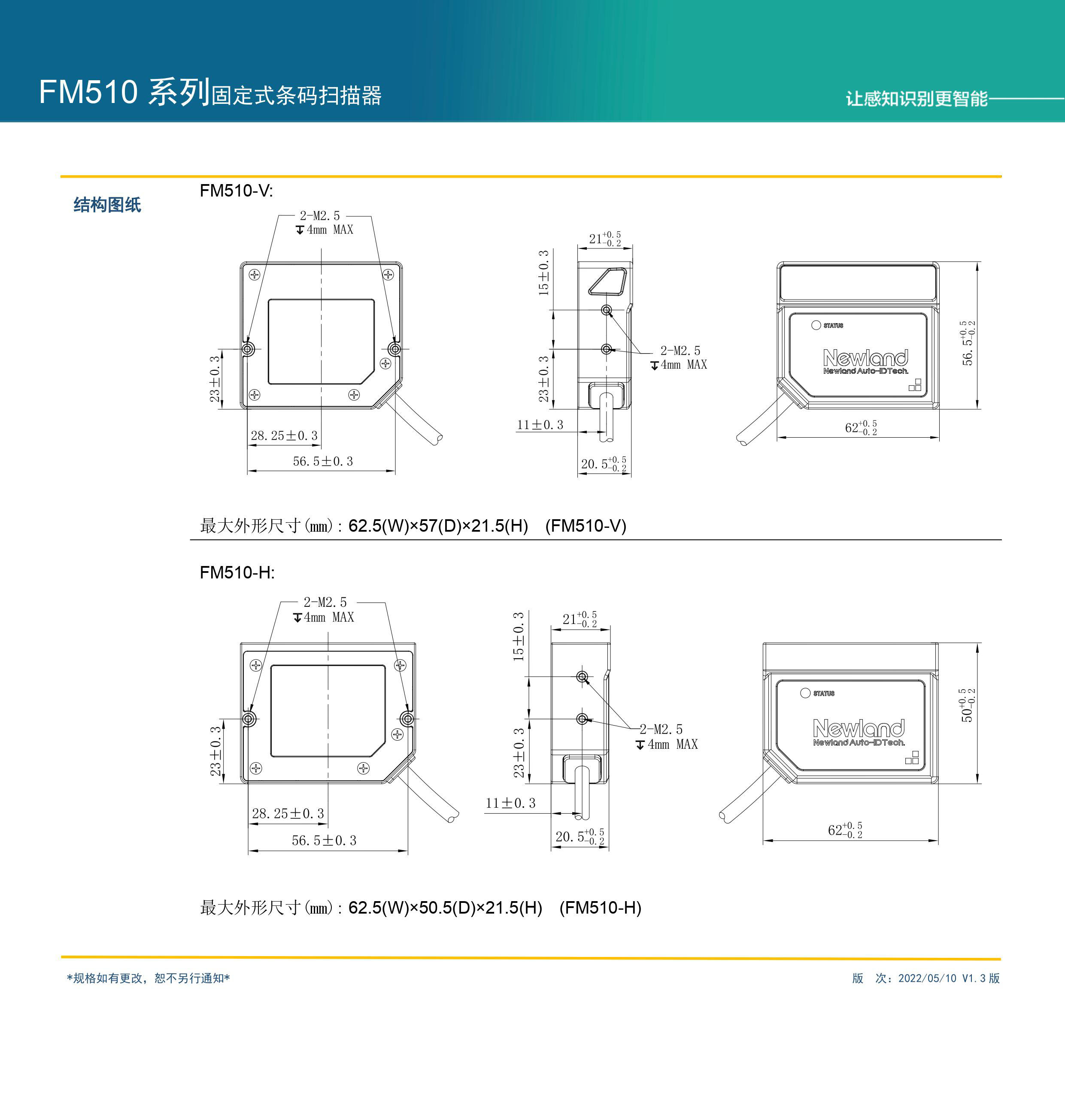 FM510系列有FM510-V和FM510-H兩個(gè)版本,主要區(qū)別在于出光方向,F(xiàn)M510-V為側(cè)出光,F(xiàn)M510-H為直出光。