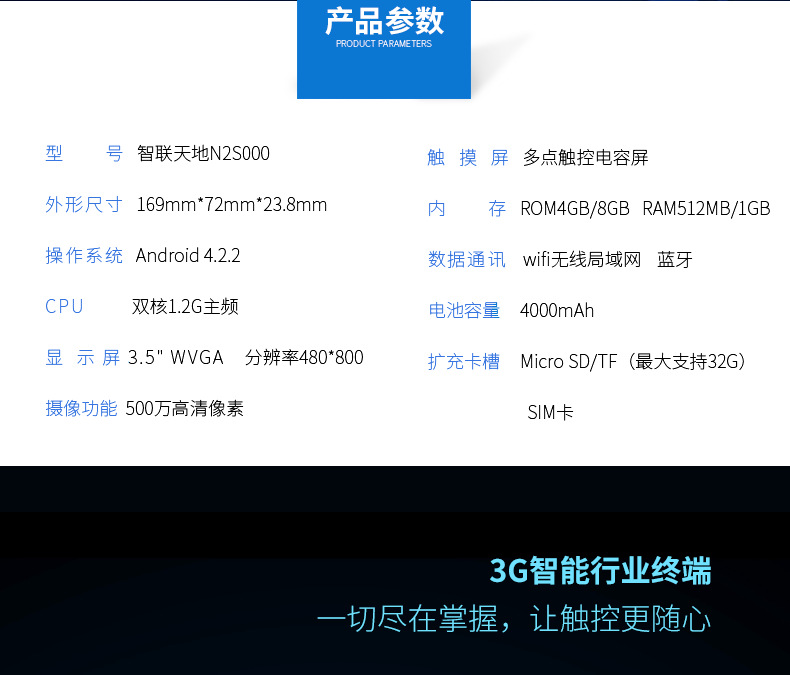 - N2S000是一款綜合性能高、適用領域廣的新一代安卓移動智能終端,采用黃金曲線和防滑落楞線設計;