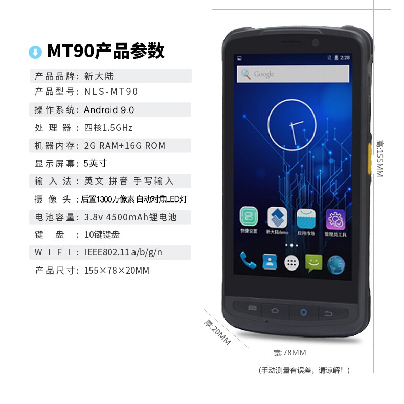 新大陸NLS-MT90支持1D/2D/BT/WiFi /4G全網通/3G全網通/GPS/ Camera/NFC,滿足多樣應用需求。