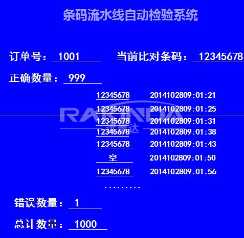 而檢測員聽到警報聲時,可根據實際情況快速處理已經,停止運行流水線下的產品,并記錄相關錯誤條碼信息。