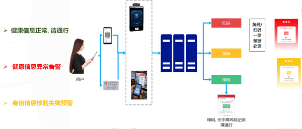 (1)用戶在需要核驗健康信息的區(qū)域,刷身份證或出示“智慧碼”,進行體溫檢測,實名認證;