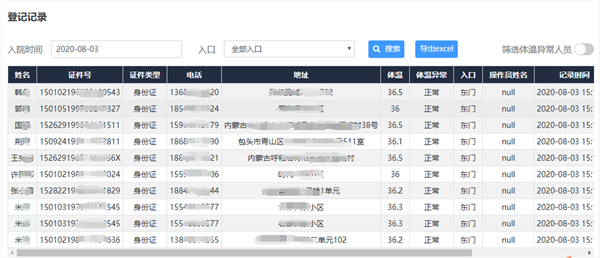 3.4.2 健康碼智能核驗系統(tǒng)--物聯(lián)網(wǎng)大數(shù)據(jù)后臺管理端(通行人員信息實時記錄);