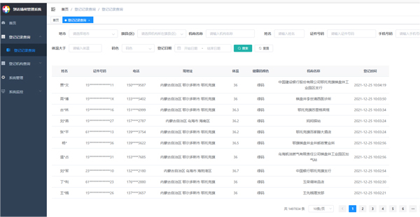3.4.1 健康碼智能核驗系統(tǒng)--內(nèi)蒙碼、鼠疫碼后臺管理端(通行人員信息實時記錄);
